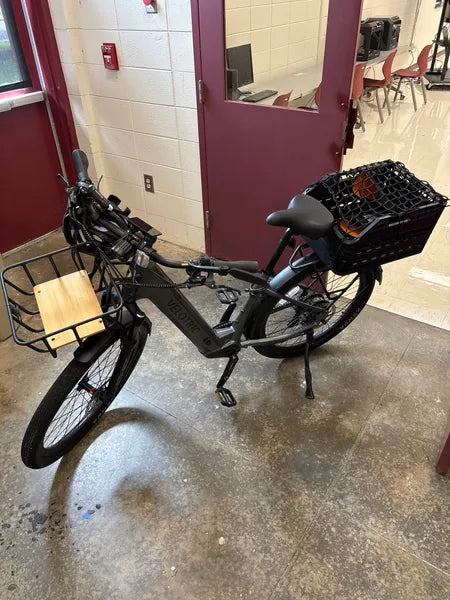 Cykel, batteri, laddare, fullängdsskärmar, stöd, ringklocka, reflexer, pedaler och verktygskit. Klart att köra.