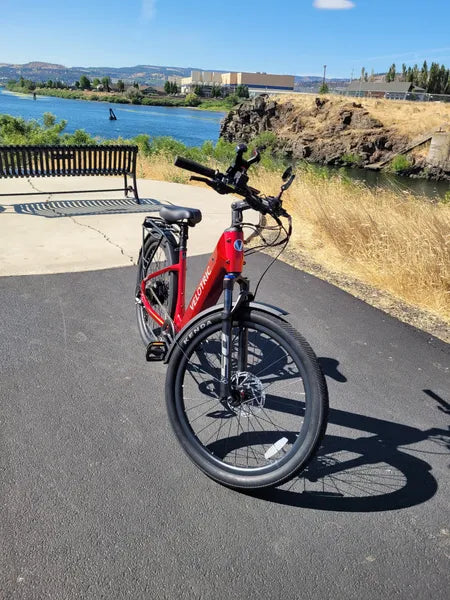 Urtagbart, UL 2271-certifierat batteri med IPX7 vattenskydd låter dig parkera och köra i regn utan oro. Den förstärkta ramen överträffar ISO 4210 med +150 % och klarar upp till 200 kg total last. TEKTRO hydrauliska skivbromsar 180 mm med automatisk motoravstängning ger mjuka, snabba och säkra stopp. För att synas bättre dygnet runt har du en 130 Lux strålkastare som lyser cirka 46 m framåt, plus integrerat bromsljus och bakre blinkers för extra synlighet.