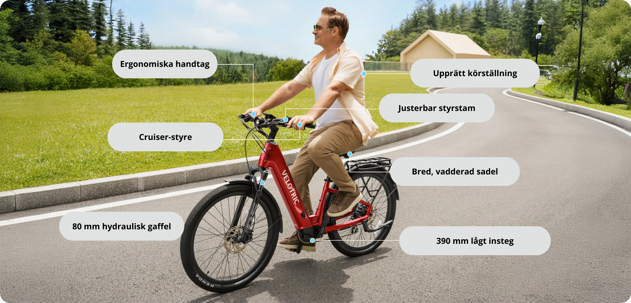 - Sadel: VELOTRIC Urban Comfort, ergonomisk