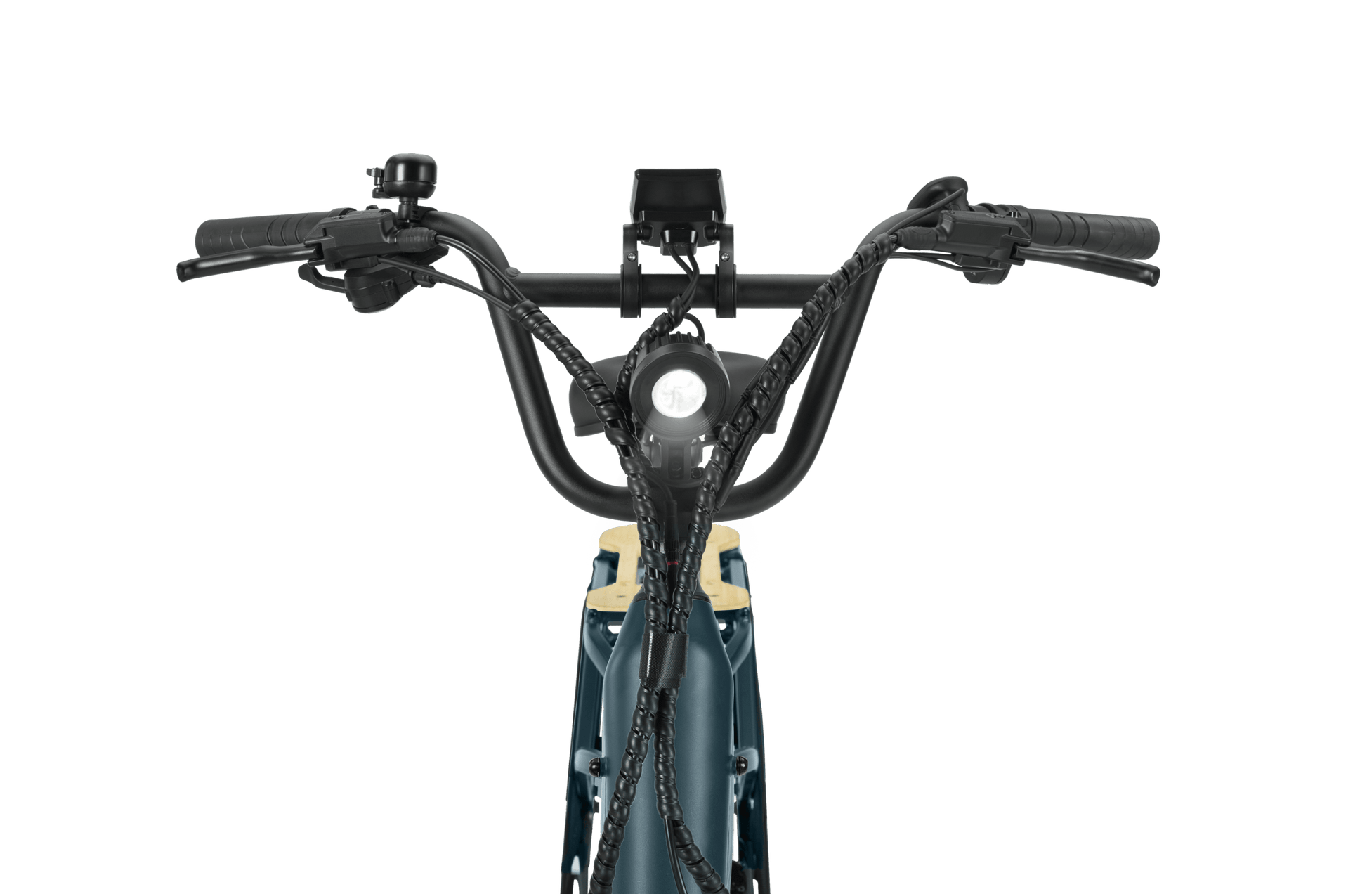 Cykel, batteri, laddare, fullängdsskärmar, stöd, ringklocka, reflexer, pedaler och verktygskit. Klart att köra.